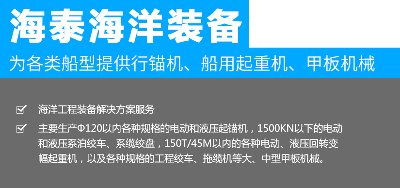 常規(guī)航行錨機、系泊絞車、系纜絞 電動(或液壓)起錨機、起錨絞盤 電動(或液壓)系泊絞車 電動(或液壓)系纜絞盤 YQ型電動液壓起重機 港口拖輪、三用工作船用設備 艏部航行錨兼拖帶絞車